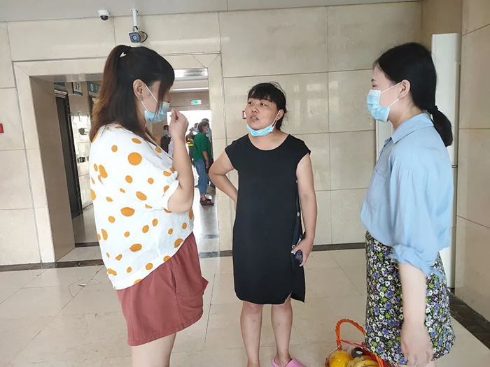 2021年7月5日,馨冠食品婦女聯(lián)合會成員賈艷、王越、王曼帶著各位婦女代表的祝福和關懷前往保定市第一中心醫(yī)院看望陳曼母親。由于疫情期間,醫(yī)院嚴禁探視,我們未能見到陳曼母親本人。