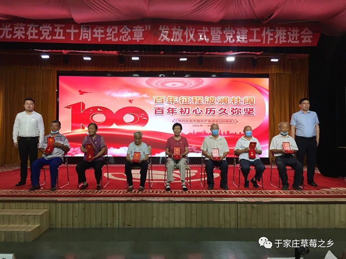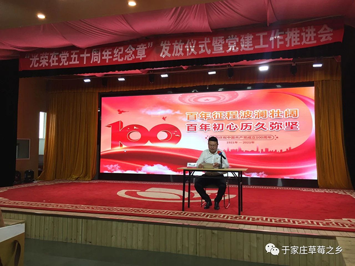 薪火相傳守初心,接續(xù)奮斗新征程。為慶祝中國共產(chǎn)黨成立100周年,推進(jìn)黨史學(xué)習(xí)教育走深走實,進(jìn)一步增強(qiáng)廣大黨員的榮譽(yù)感、歸屬感和使命感,激發(fā)廣大黨員愛崗敬業(yè)、奮發(fā)有為的工作熱情,6月29日上午,于家莊鎮(zhèn)“光榮在黨50年紀(jì)念章”發(fā)放儀式暨黨建工作推進(jìn)會于保定市冠香居食品有限公司3樓“馨冠文化藝術(shù)館”隆重舉行。