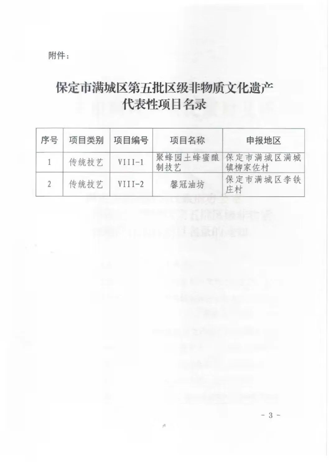 根據(jù)《中華人民共和國(guó)非物質(zhì)文化遺產(chǎn)法》《河北省非物質(zhì)文化遺產(chǎn)條例》有關(guān)規(guī)定,經(jīng)個(gè)人自愿申請(qǐng)、文化旅游行政部門(mén)逐級(jí)審核推薦、組織專(zhuān)家評(píng)議、社會(huì)公示等程序,認(rèn)定第五批滿(mǎn)城區(qū)非物質(zhì)文化遺產(chǎn)代表項(xiàng)目的有“馨冠油坊”、“聚豐園土蜂蜜釀制技藝”。