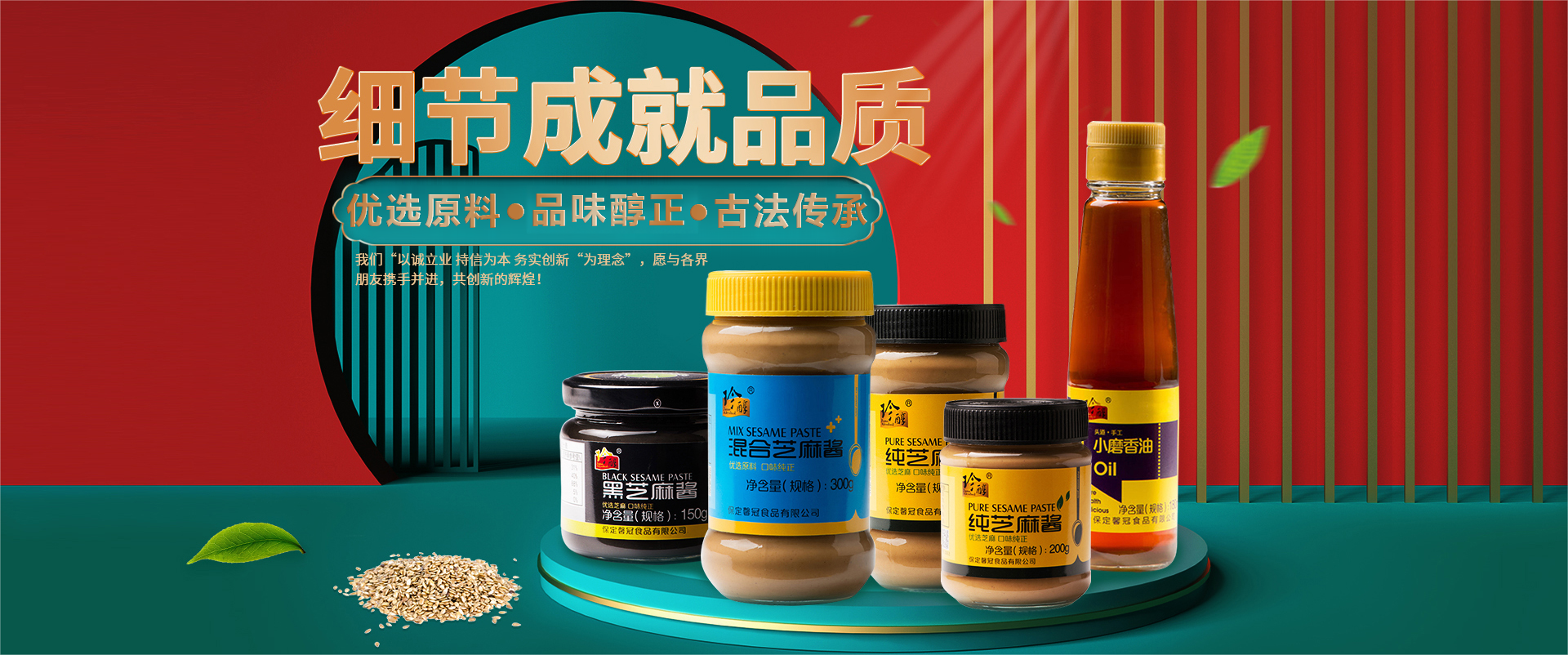 保定馨冠食品有限公司坐落在河北省保定市滿城區(qū)李鐵莊村。以“以誠立業(yè) 持信為本 務實創(chuàng)新“為理念”。馨冠公司主要品牌“馨冠”“珍醇”“靖王”等注冊商標。公司主營芝麻油、芝麻醬、花生醬三大系列40多個產品。